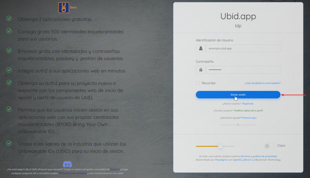 UbID IdP es una aplicación de software desarrollada por Paradigma. Su objetivo principal es facilitar el enrolamiento y la prueba de identidad de un individuo, así como la autenticación digital recurrente. Está diseñada para integrarse fácilmente con otras aplicaciones de software mediante el estándar OpenID Connect.