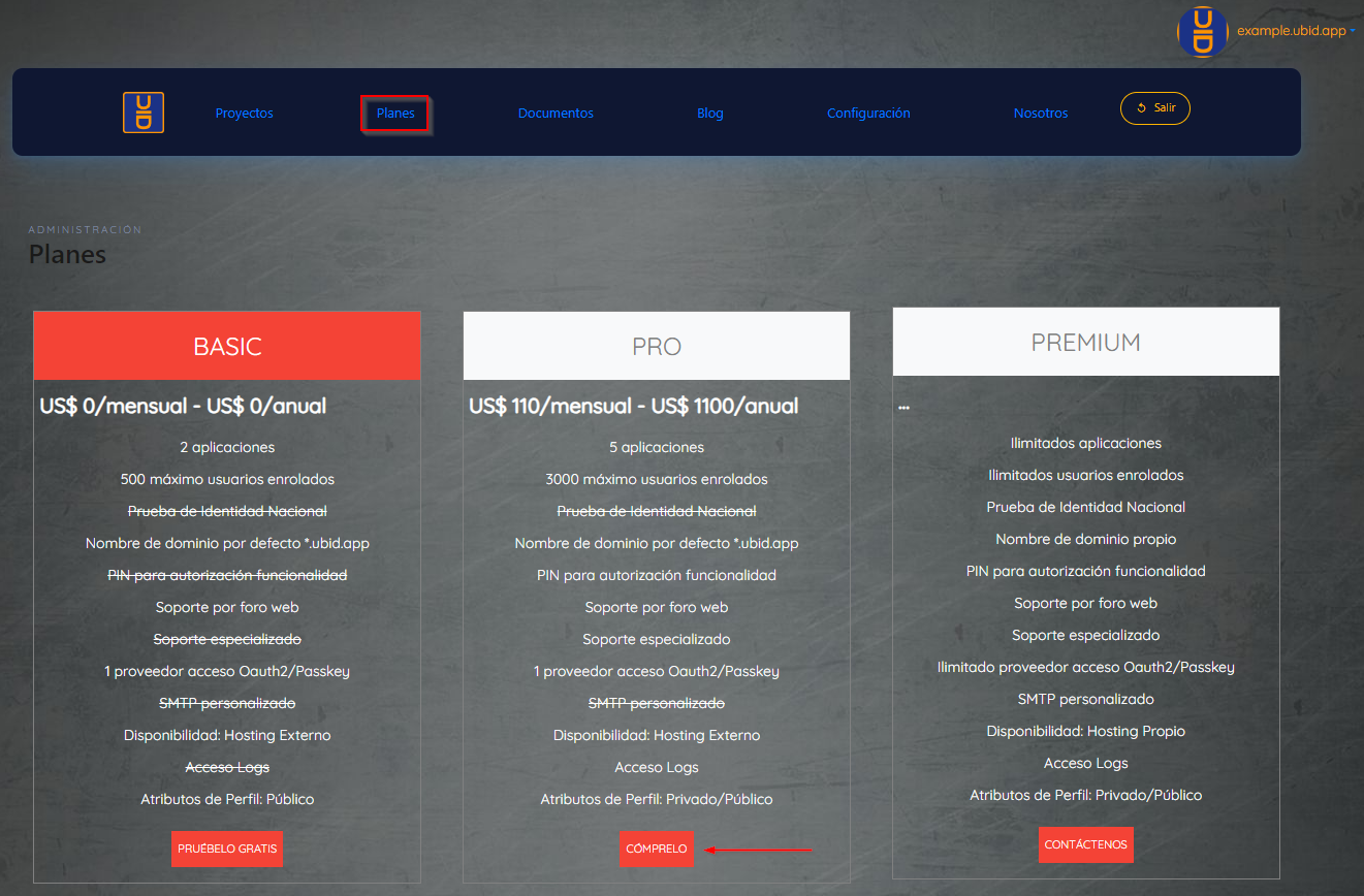 UbID consta de tres planes, BASIC, PRO, y PREMIUM.