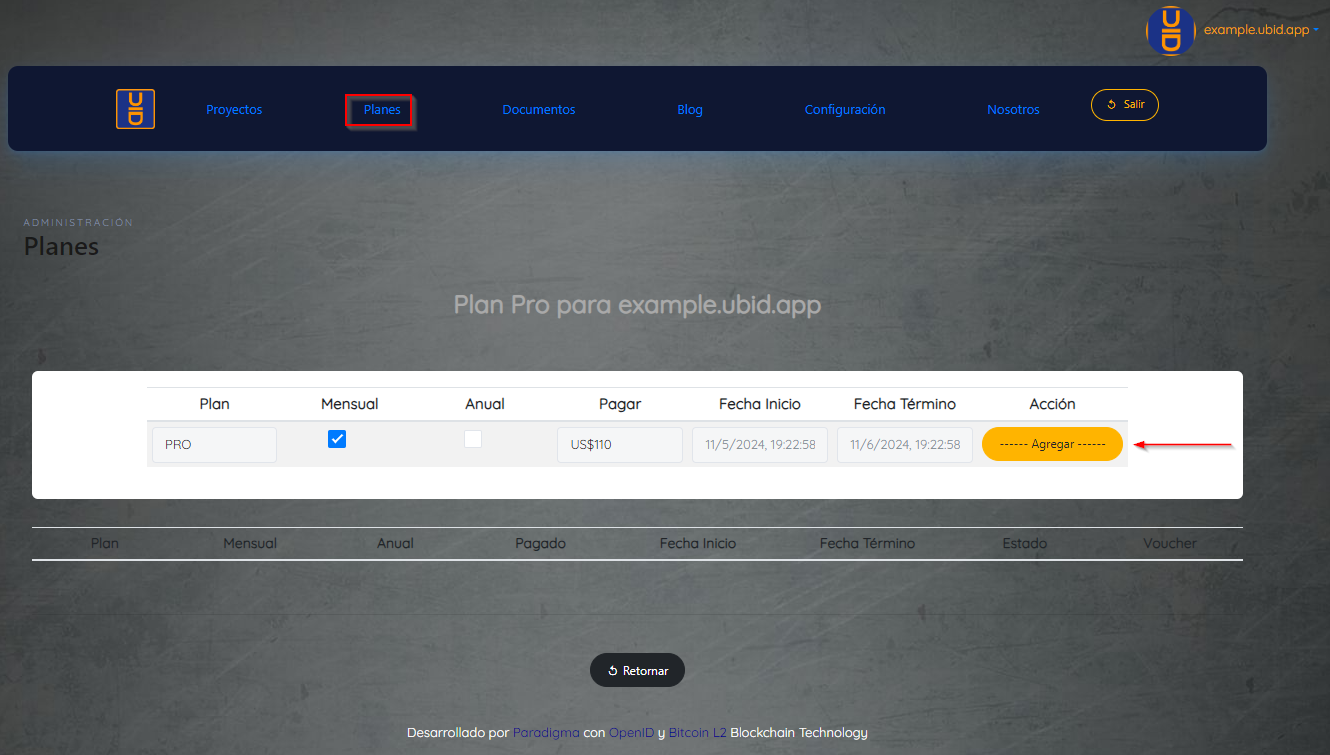 Cómo se había descrito antes, el plan PRO permite hasta 5 aplicaciones bajo el dominio UBID.APP, y 3.000 usuarios registrados como máximo, y contiene algunas restricciones, tal como se indica en la imagen anterior. Tiene un costo asociado mensual/anual.